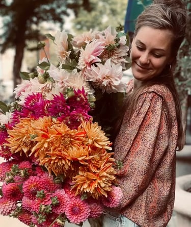 Ik ben Daphne, 23 jaar, bloemiste met een hart dat bloeit voor elk seizoen. Wat begon als een liefde voor een enkele roos op tafel, groeide uit tot een droom vol geur, kleur en creativiteit.